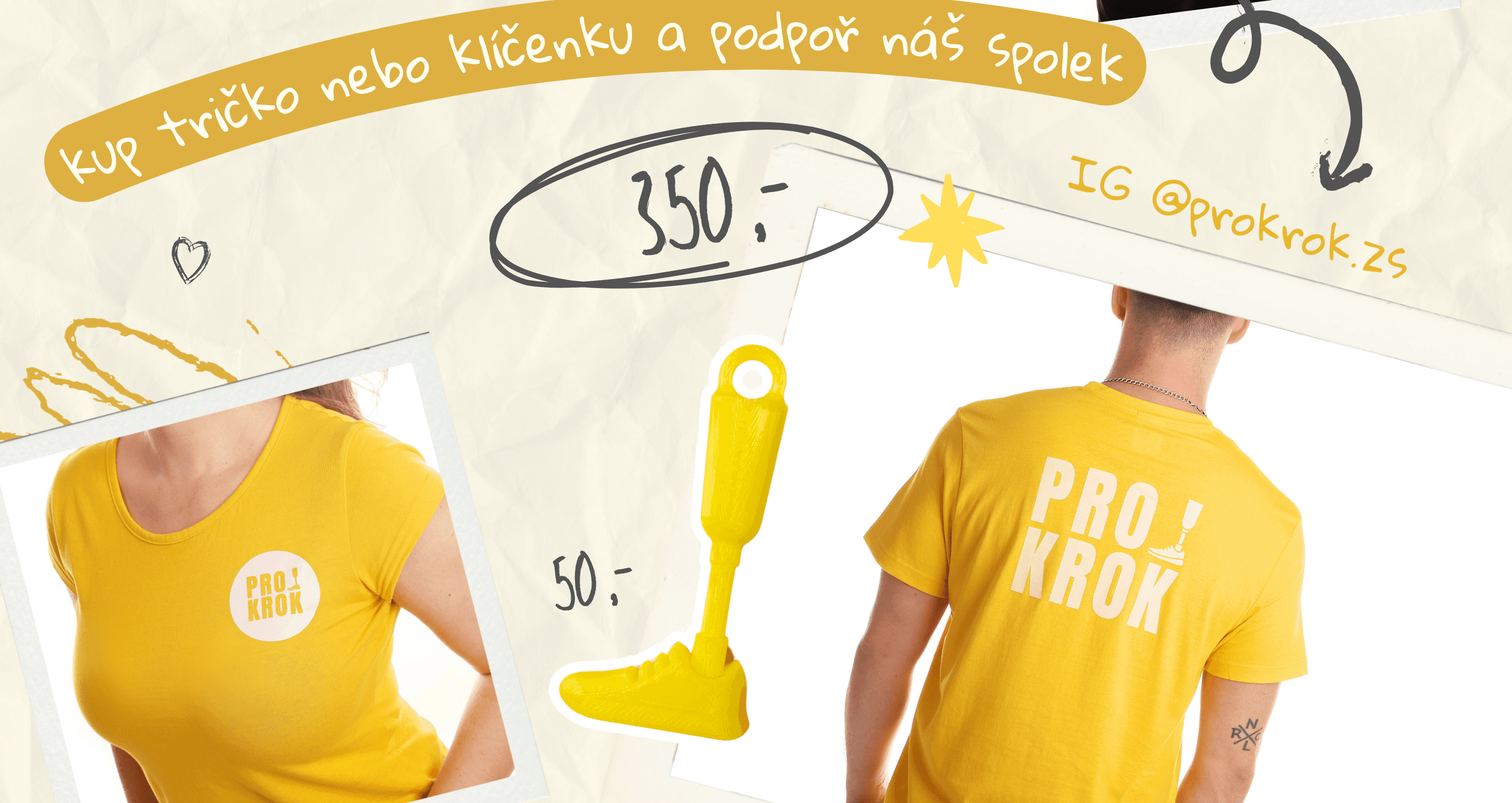 V nabídce jsou trička v dámské i pánské variantě a nožičkové klíčenky, které mohou zdobit tvůj batoh nebo klíče - ať máš kousek ProKroku vždycky s sebou.